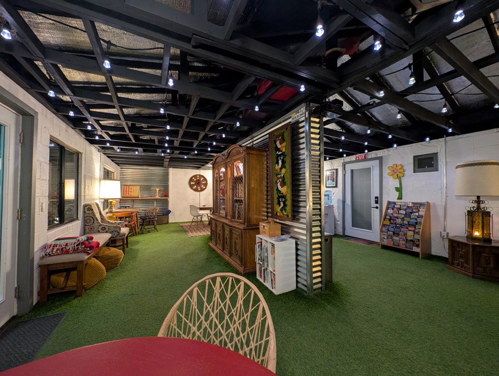 The motel wasn’t a motel originally. In fact, it’s had a lot of identities over its 110-year life. The first structure was a small, adobe guesthouse built in 1915. In the decades to follow, additions were made to convert it into a full-blown motel. Later, it was turned into a restaurant and then a small series of shops. When Sebastiaan and Anna purchased the property, they renovated it for a return to overnight accommodation. That original structure still stands in the back and serves as the Creative Space – an open room for guests and the community with games, books, activities, musical instruments, kitchenette, and meeting space. There’s also a common area outside with a fire pit and plenty of seating. It’s quite a lovely, relaxing space.