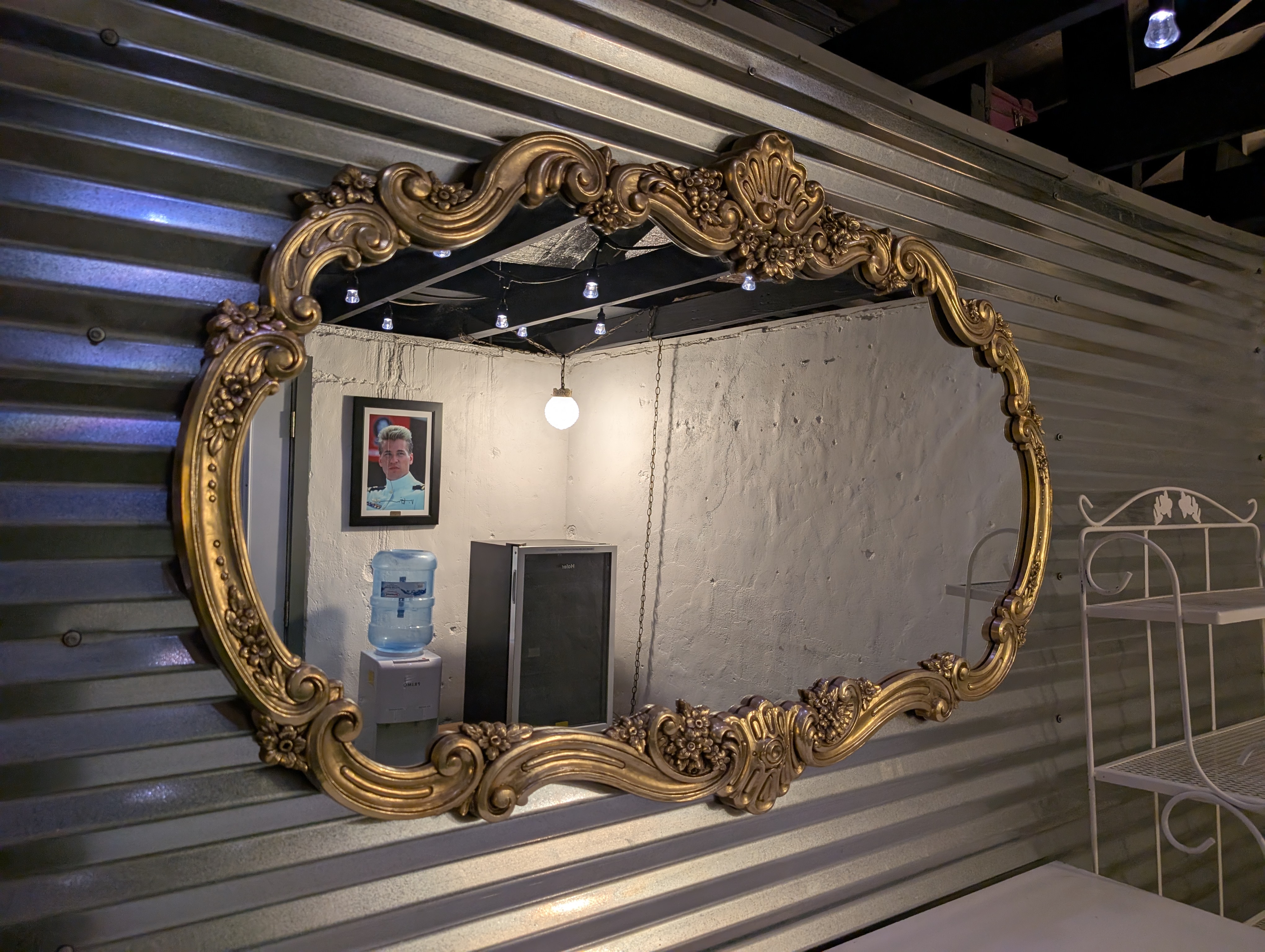 That evening, I spent a significant amount of time just sitting inside the creative space. Sebastiaan and Anna have their own Spotify playlists and I really enjoyed just sitting and listening to their selection, which included some familier oldies but mixed in songs I had not heard before. I had been given a tour last year, so I was somewhat familiar with the room, but I walked around anyway. I went to the back to look at the signed photo of Val Kilmer (the late actor had stayed here once) and when I turned around to head back to the front I saw something that shocked me. It was a mirror.
