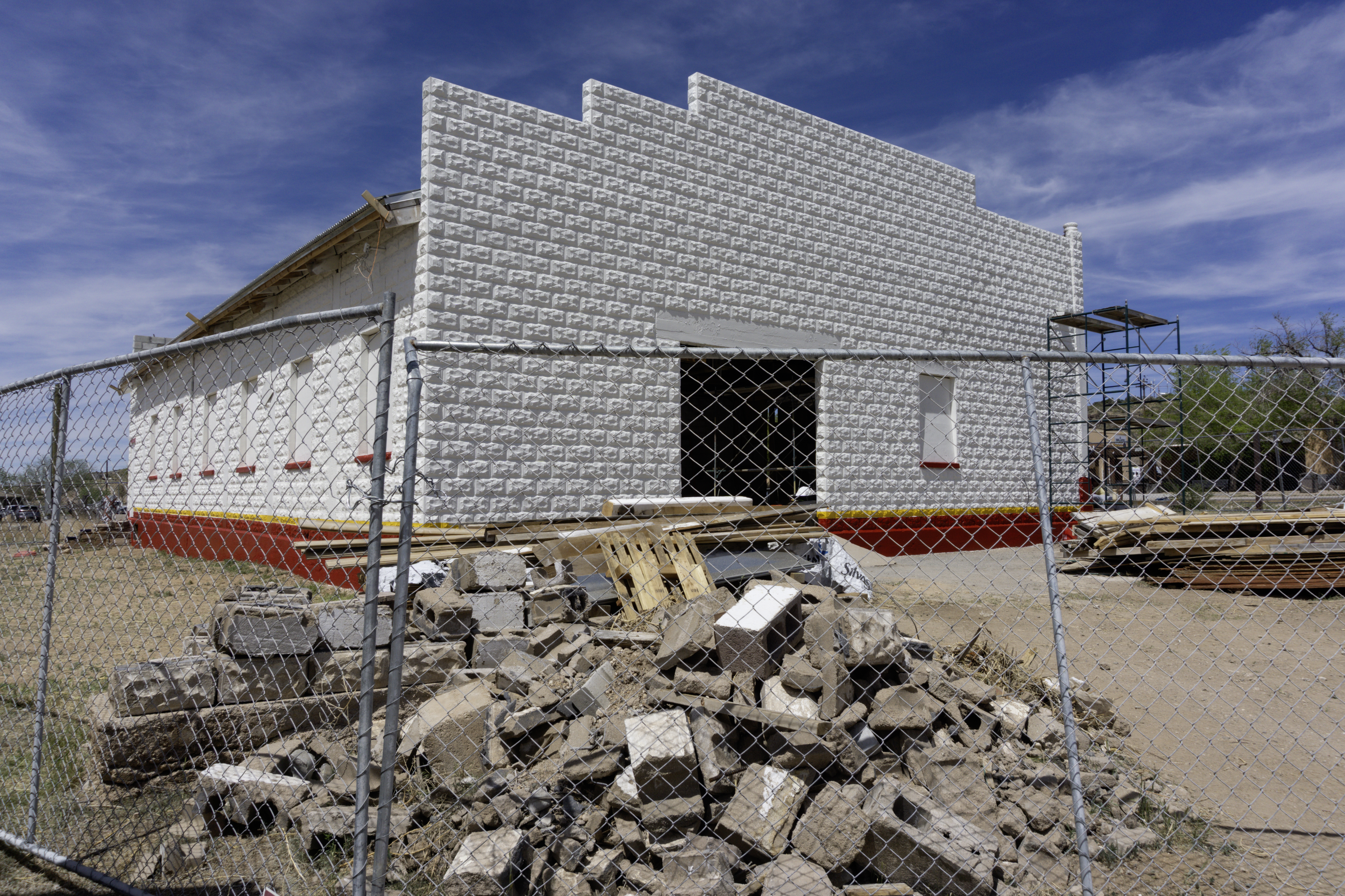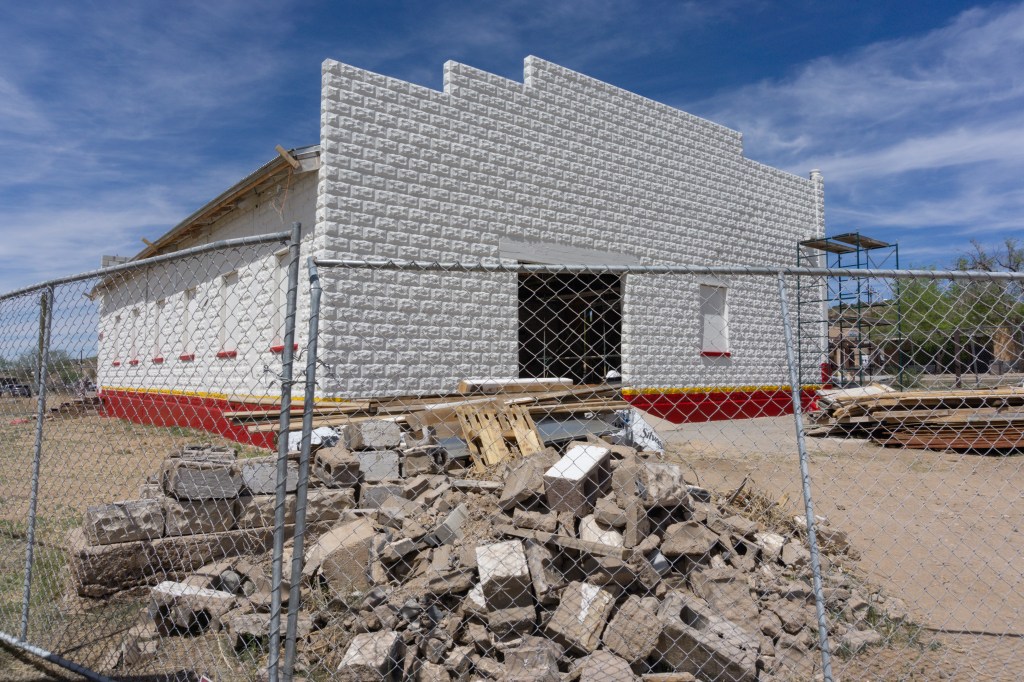 The station was named to the National Trust for Historic Preservation’s 11 Most Endangered Historic Places list in 2023. This brought greater attention to the station and its place in the region’s history; that attention galvanized efforts to save it. The tribe received several grants – including monies from the Historic Route 66 Association of Arizona and the National Trust’s Preserve Route 66 program – and reconstruction commenced. The walls were built out of concrete blocks originally ordered from a Sears & Roebuck catalog. Amazingly, the company that made those blocks is still in business…unlike Sears. New, identical blocks repaired the storm damage. New ceiling trusses were installed and the interior was cleaned up. The station began to take shape once again.