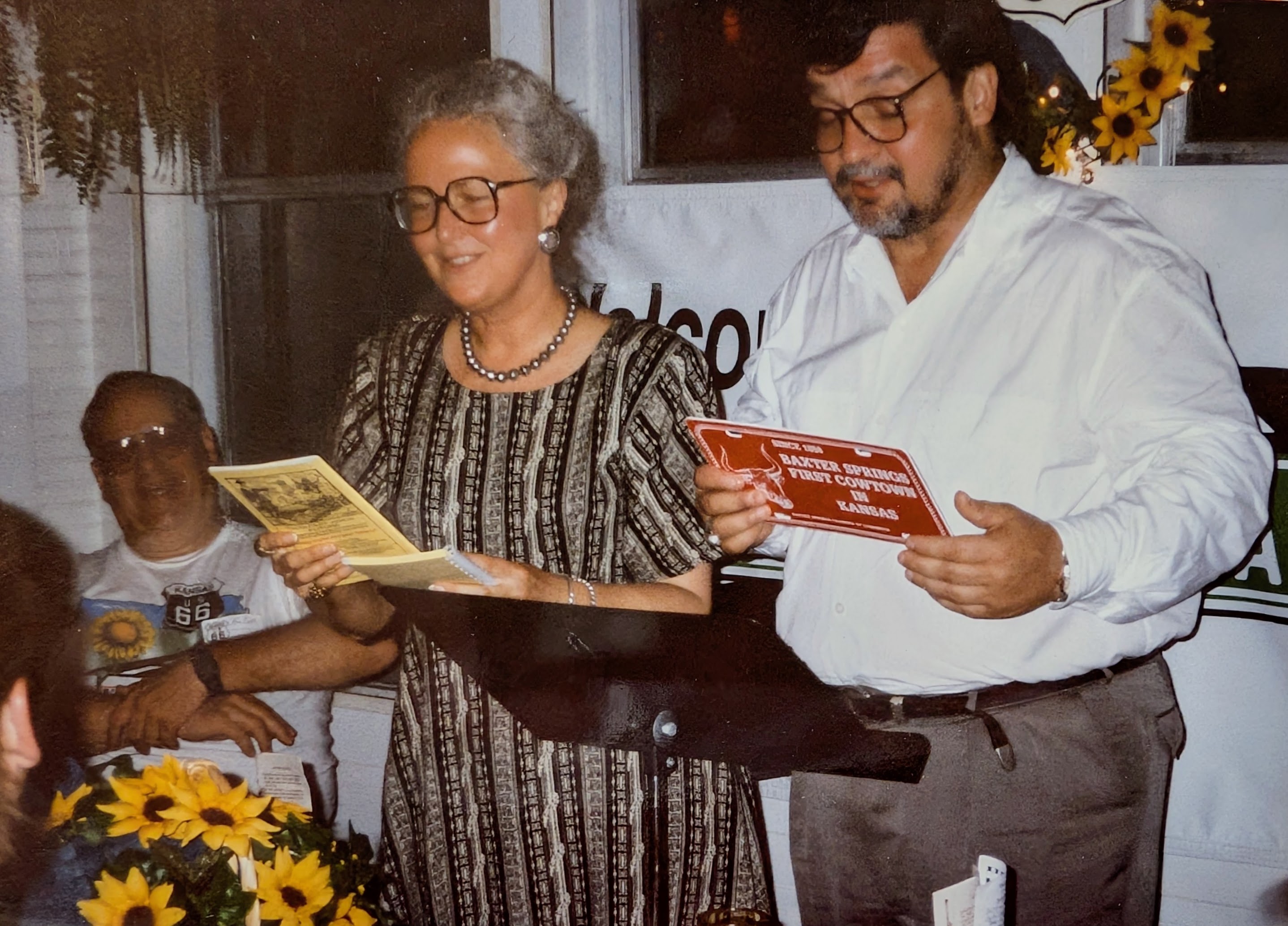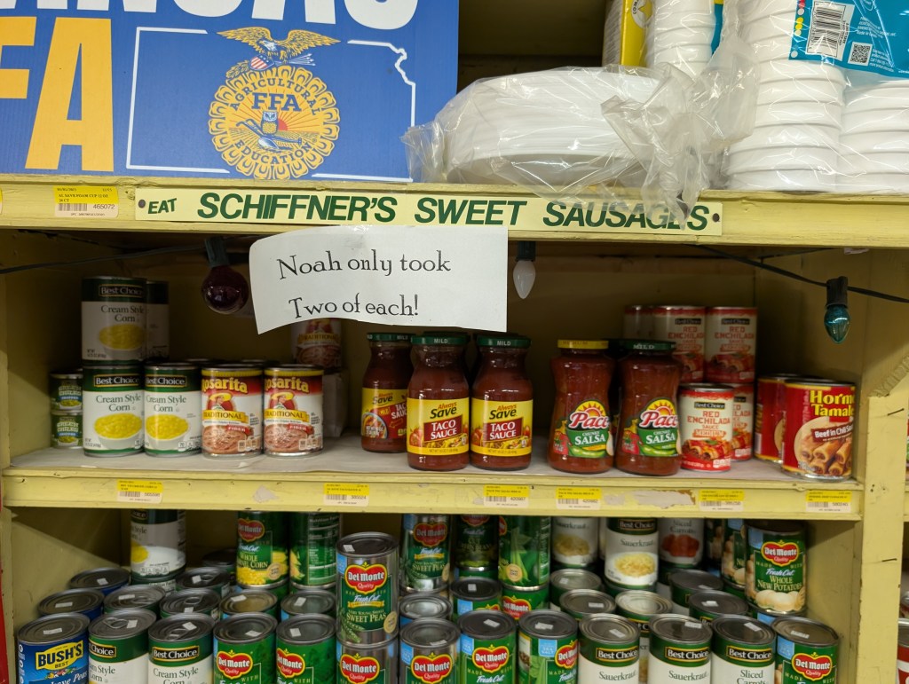 Time marches on and some changes are inevitable. The group of old-timers that would come drink coffee each morning and “solve the world’s problems” has dwindled. The price of goods has changed significantly and credit/debit cards are more common than cash most days. But the tin ceiling is still in place and the high shelves are full of artifacts and reminders of the past. Faded newspaper articles speak of past celebrations like the 1992 celebration of Route 66’s 66th anniversary and scattered photographs show off tour buses from the Smithsonian led by Michael and Suzanne Wallis. In 2024, the National Trust for Historic Preservation awarded a grant to the store to replace the aged wooden French doors that line the front patio. There were copies of a local newsletter on a shelf, celebrating their receipt of that grant.