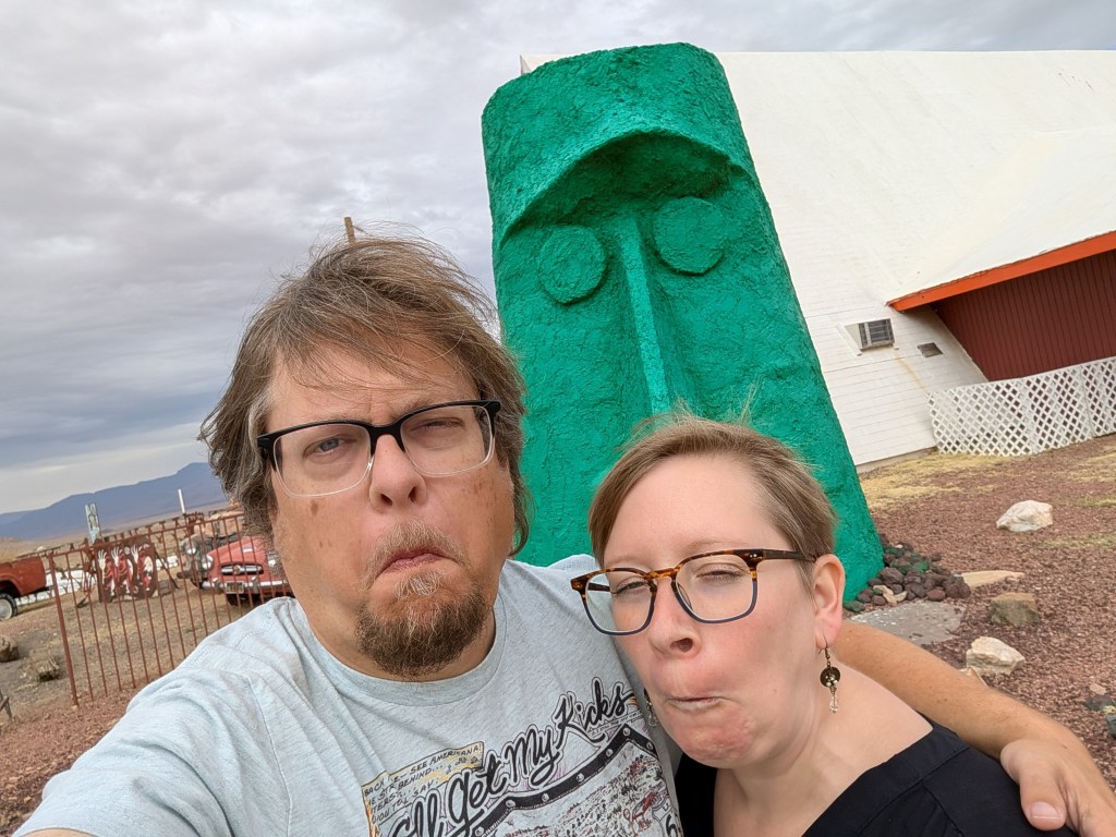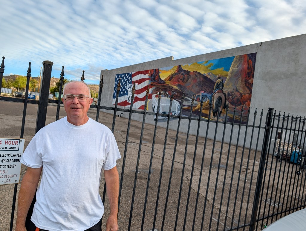Route 66 is a much richer and worthwhile journey because of the people that live and work along it. I have made many friends over the years – one of the earliest connections came in Arizona when I met Jim Hinckley and his wife, Judy. Jim is a historian and author and a selfless promoter of those bringing value and awareness to the highway. It amazes me to look back at our first meeting in 2015 when I was so young in my own 66 journey, and then to look at where we both are today. His podcast is a great addition to the media landscape of the Mother Road. Samantha and I enjoyed dinner with the Hinckleys our first night in Kingman.