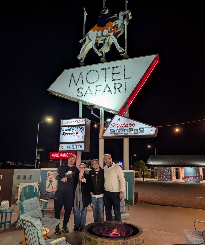 Our final overnight stop was at the Motel Safari in Tucumcari, New Mexico. I had a good chat with the new owner, Rich Havlik, and ended up rooming next to a friend: Marian Pavel! He had returned to Route 66 to make arrangements for the new Centennial Passport that will be released in 2026 and we were so sad to miss him in Tulsa, but the road still allowed us to spend some time together. We spent hours chatting and reminiscing about our time together in Slovakia last year. It still feels like it was a dream!